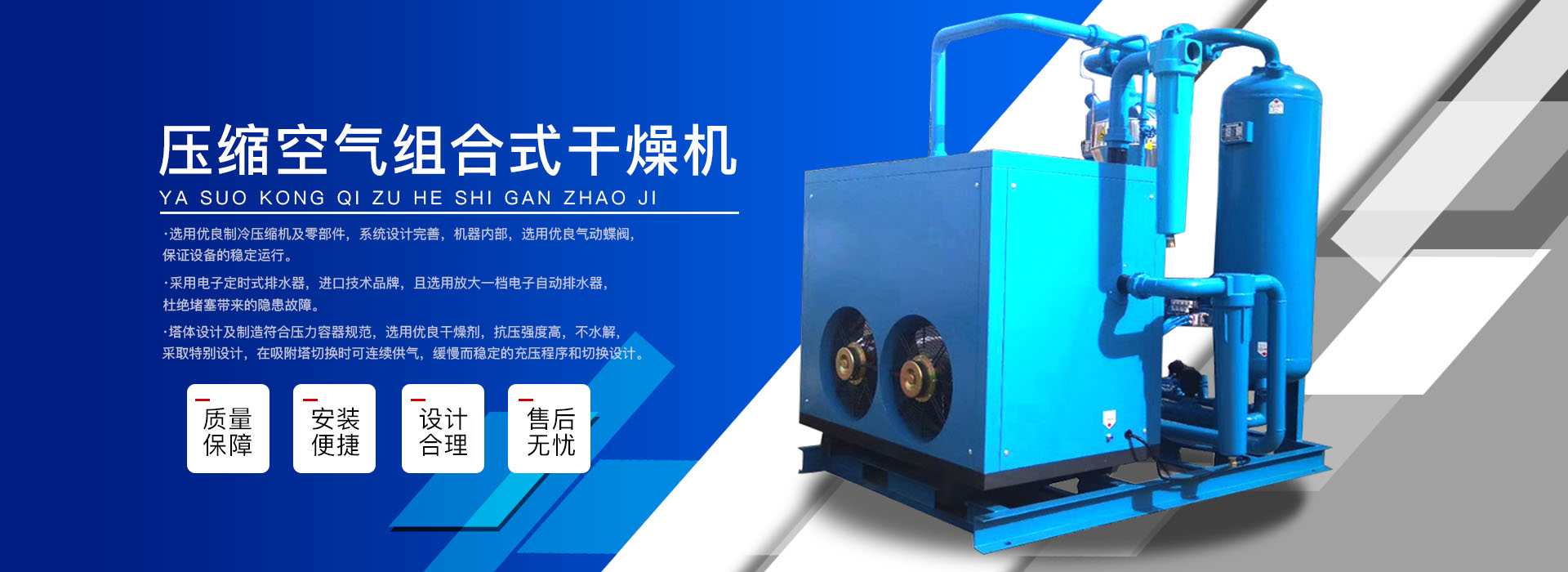 本公司系中國科學院、重鋼院、機電技術設計院、氣動技術研究所等相關專家合作的具有雄厚技術力量的高科技實體,是一個專業從事各種氣體干燥凈化及分離純化設備研究開發(fā)及推廣應用的高科技公司。公司積多年對壓縮空氣凈化設備的生產技術和銷售經驗,并在消化吸收國外先進技術的基礎上,結合國內實際工況特點,研制出適合國內外廣大用戶的“滬盛”牌HSD系列壓縮空氣冷凍式干燥機、吸附式干燥機、后部冷卻器、預冷機組、工業用冷水機組和HF系列壓縮空氣高效精密過濾器(國產濾殼,美國漢克森HANKISON濾芯)等13大系列計300多種規(guī)格產品。并且新研發(fā)出燥式干器, 廣泛應用于電力、冶金、電子、機械、石油、化工、汽車制造、紡織、化纖、輕工、造紙、橡膠、儀表、食品、空氣、卷煙、生物、醫(yī)藥、日化等行業,在國內同行業中一直處于領先地位。